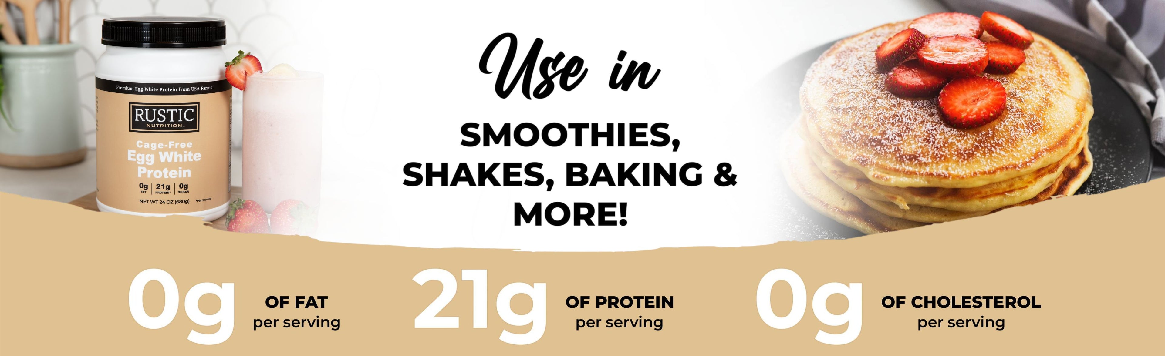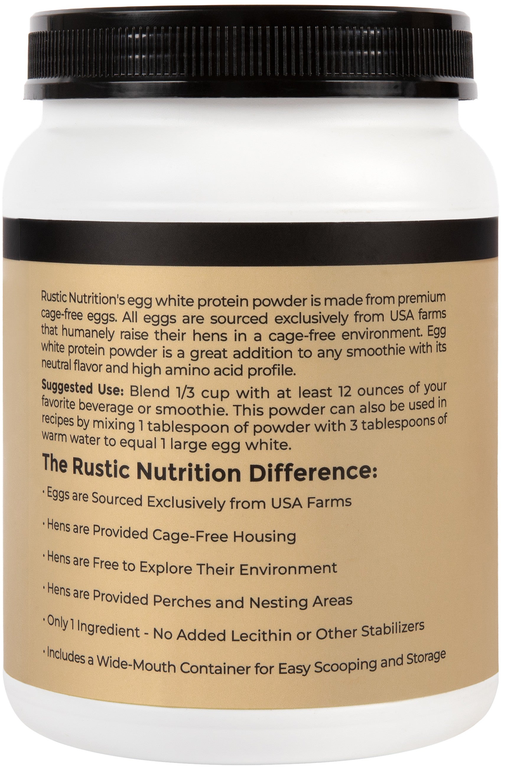 Rustic Nutrition Cage-Free Egg White Protein Powder, USA-Sourced, Humanely-Raised, 21g Protein, 0g Fat, 0g Sugar, 0g Cholesterol (Unflavored)